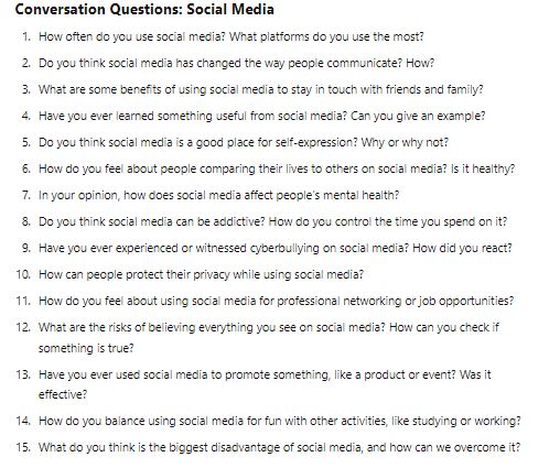 Conversation Questions: Social Media